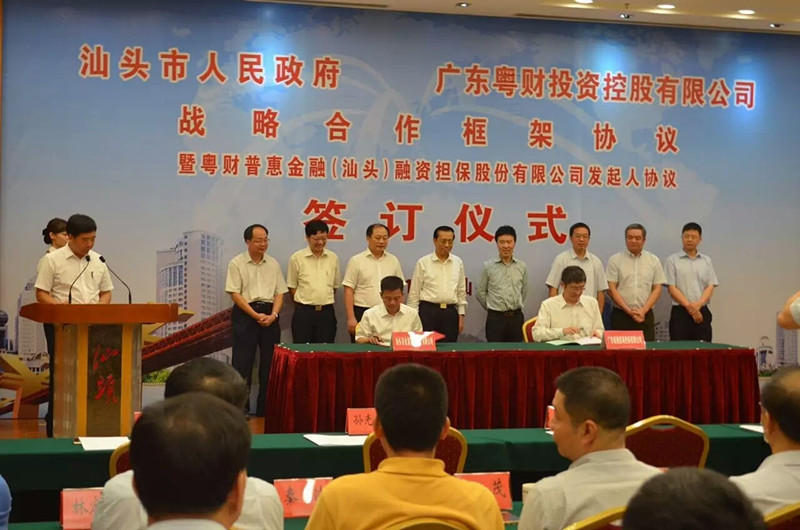 為建立健全汕頭市政策性擔(dān)保機(jī)構(gòu),緩解中小微企業(yè)融資難、融資貴問題,昨日下午,在汕頭市政府和汕頭市財(cái)政局的大力支持下,汕頭市金源資產(chǎn)經(jīng)營有限公司(下稱金源公司)與廣東省融資再擔(dān)保有限公司(下稱省再擔(dān)保公司),于汕頭市委機(jī)關(guān)大院就共同出資設(shè)立粵財(cái)普惠金融(汕頭)融資擔(dān)保股份有限公司 達(dá)成協(xié)議,金源公司主要負(fù)責(zé)人詹東與省再擔(dān)保公司法人代表劉祖前簽訂了粵財(cái)普惠金融(汕頭)融資擔(dān)保項(xiàng)目發(fā)起人協(xié)議。