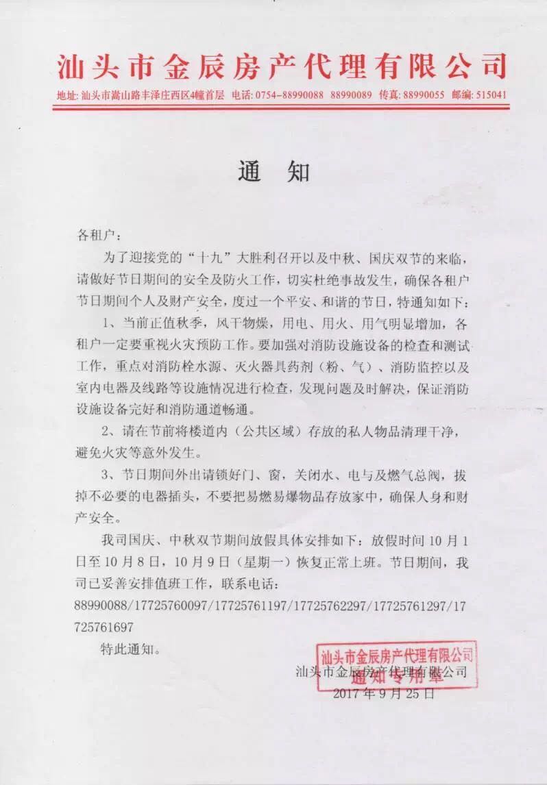 金辰公司2023年中秋節、國慶節安全通知